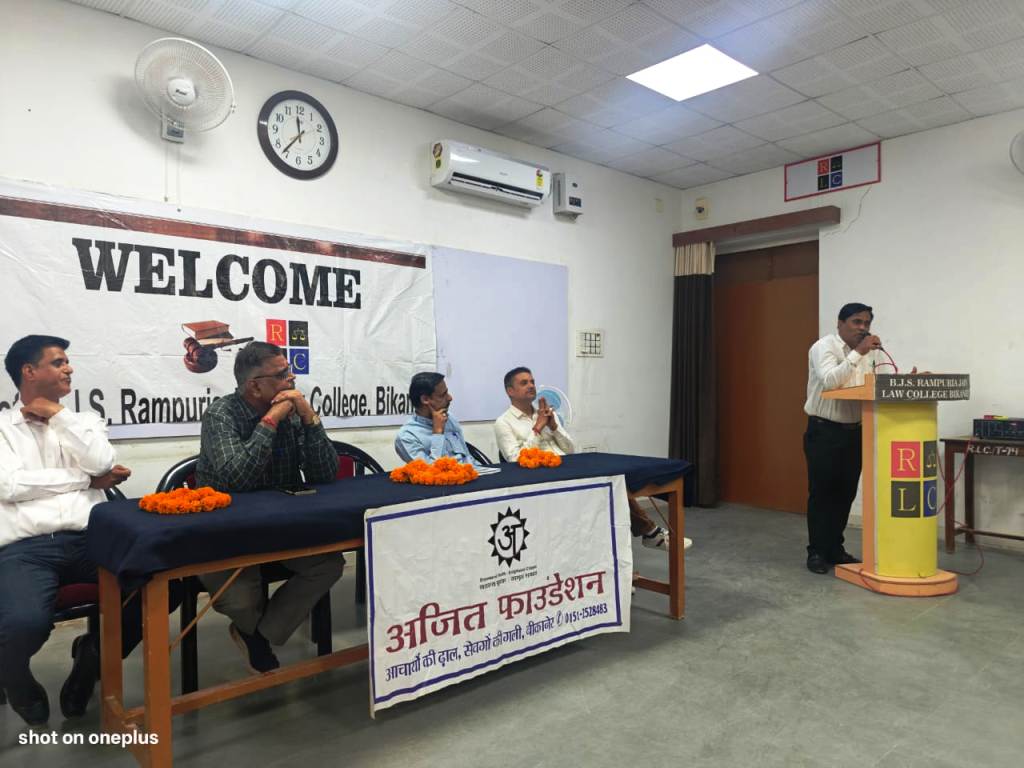 Dr. Anant Kishore Joshi, Principal of Rampuria Law College, delivered the keynote address. He highlighted that while discussions about the Constitution are widespread, few people actually read or understand it deeply—most rely on social media or hearsay.