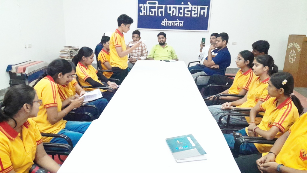 On July 27, Ajit Foundation’s “Hathi” initiative—an effort to encourage young readers in Bikaner to engage with Hindi literature—organized a thoughtful session dedicated to the stories of Munshi Premchand. Anand Purohit classified Premchand’s storytelling into three phases: idealism, a blend of idealism and realism, and pure realism, noting how the freedom movement influenced his themes of patriotism. Premkumar Meghwal spoke on Premchand’s ability to bring the social realities of his time to life, while Suresh Purohit highlighted the strong ethical tone and progressive portrayal of women in his work. Young members of the group shared insights on key stories: Prateek reflected on the universal appeal of “Eidgah,” Arpita Swami appreciated the nuanced take on justice and corruption in “Namak ka Daroga,” and Tanisha Suthar analyzed the social critique and gender themes in “Kafan.” A special aspect of the event was the full participation of youth under 30, including two teenage girls who read excerpts and shared their interpretations—making it an engaging and inspiring celebration of Hindi literature.