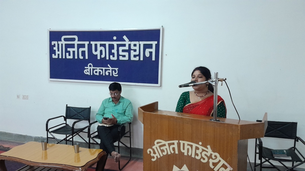 A vibrant literary evening was organized at the Ajit Foundation auditorium, celebrating poetic expression in Hindi, Rajasthani, and Urdu. The event featured accomplished women poets who shared both their verses and the stories behind their poetic journeys. Representing Hindi, Dr. Renuka Vyas ‘Neelam’ presented her recent poem “Nahin Hain Agyeya”, paying tribute to the literary giant Agyeya, followed by the environmentally-themed “Katta Hai Jab Bhi Hara Ped”, and the powerful long poem “Gandhari”, centered on the inner dilemmas of the Mahabharata’s Gandhari. In the Urdu segment, Sharada Bhardwaj opened with her nazm “Khuda Har Chehre Par Masoomiyat…”, reflecting on communal harmony and human innocence, and presented an Urdu Saraswati Vandana, showcasing her creative innovation in spiritual poetry. Dr. Krishna Acharya, reciting in Rajasthani, mesmerized the audience with “Mata Mhari Surast Hai, Maand Maandna Aakhar Jholi Bhar De”, and her touching poem on daughters “Kaalje Ri Kor Betiyan”. Her Holi-inspired song “Preet Ra Parinda Gaasi Preet Ra Geetalda”beautifully captured the mood of the season and nature’s joyful rhythms. The event was a celebration of linguistic diversity, poetic expression, and the creative voice of women in literature.