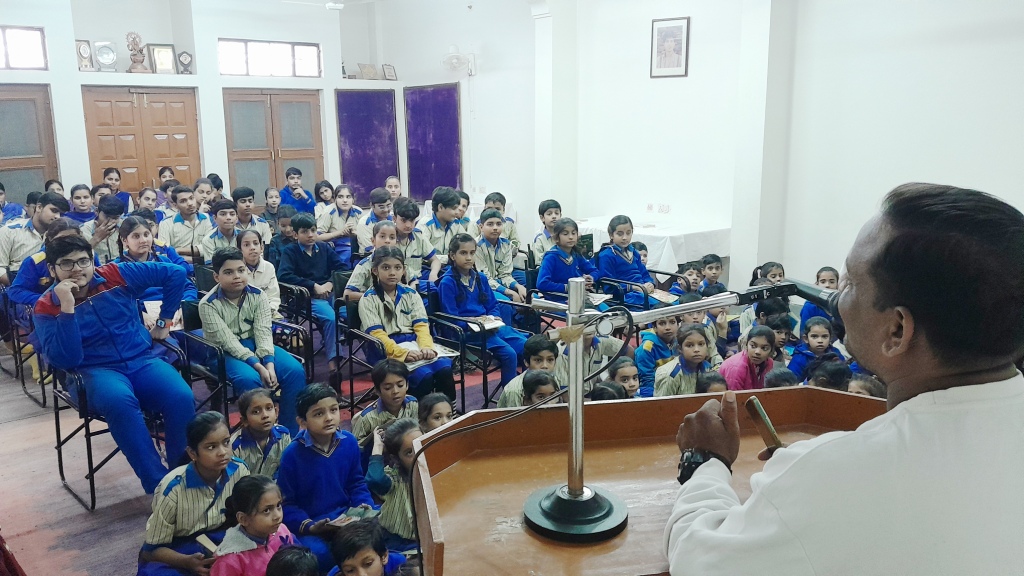 The speaker, Advocate Jugal Kishore Vyas (Director, Child Welfare Society, Bikaner), challenged students to look beyond textbooks and notice what happens around them every day—children begging on streets, performing dangerous acts, or being pushed into labour. Seeing is not enough, he stressed. Speaking up and acting is where change begins.