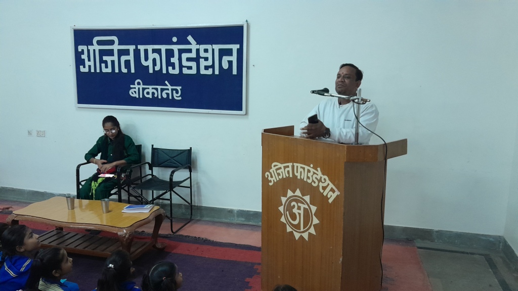 Harish Bhadani (1933 – 2009), a well-known poet from Bikaner and friend of the Ajit Foundation, was commemorated in a week-long program at Ajit Foundation. The program featured Bhadani’s books and photo exhibition, inaugurated by poet Saral Vishaarad, artist Sannu Harsh, and social activist Kavita Vyas. A lecture titled “Harish Bhadani: Through the Window of Memories” was delivered by prominent Hindi and Rajasthani literary figure Malchand Tiwari on December 22, 2024. Tiwari shared his first meeting with Bhadani at a Hindi promotion committee event in Sri Dungargarh and discussed Bhadani’s poetic legacy, noting:His work contained philosophical inquiries and spirituality He preferred writing songs as he believed they were most communicative. He developed a unique linguistic style, often breaking free from traditional Hindi grammar rulesHis work contained philosophical inquiries and spirituality The program also included a screening of Harish Bhadani’s YouTube interview on December 21, 2024.
