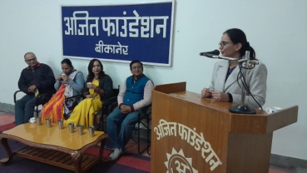 Ajit Foundation organized a two-day event on “Women’s Writing and Society” on January 18-19, 2025. On the first day, an exhibition of books by women poets was held at the community library, inaugurated by renowned writer Dr. Krishna Acharya. On January 19, a lecture was conducted, with Dr. Basanti Harsh as the keynote speaker. She highlighted the significant role of women in literature across various genres, despite societal challenges. Dr. Krishna Acharya emphasized the historical importance of women’s creativity and its impact on society. Senior writer Saroj Bhati introduced the topic, stating that from the Vedic era to the present, women’s writing has shaped literature and continues to be a powerful force for change.